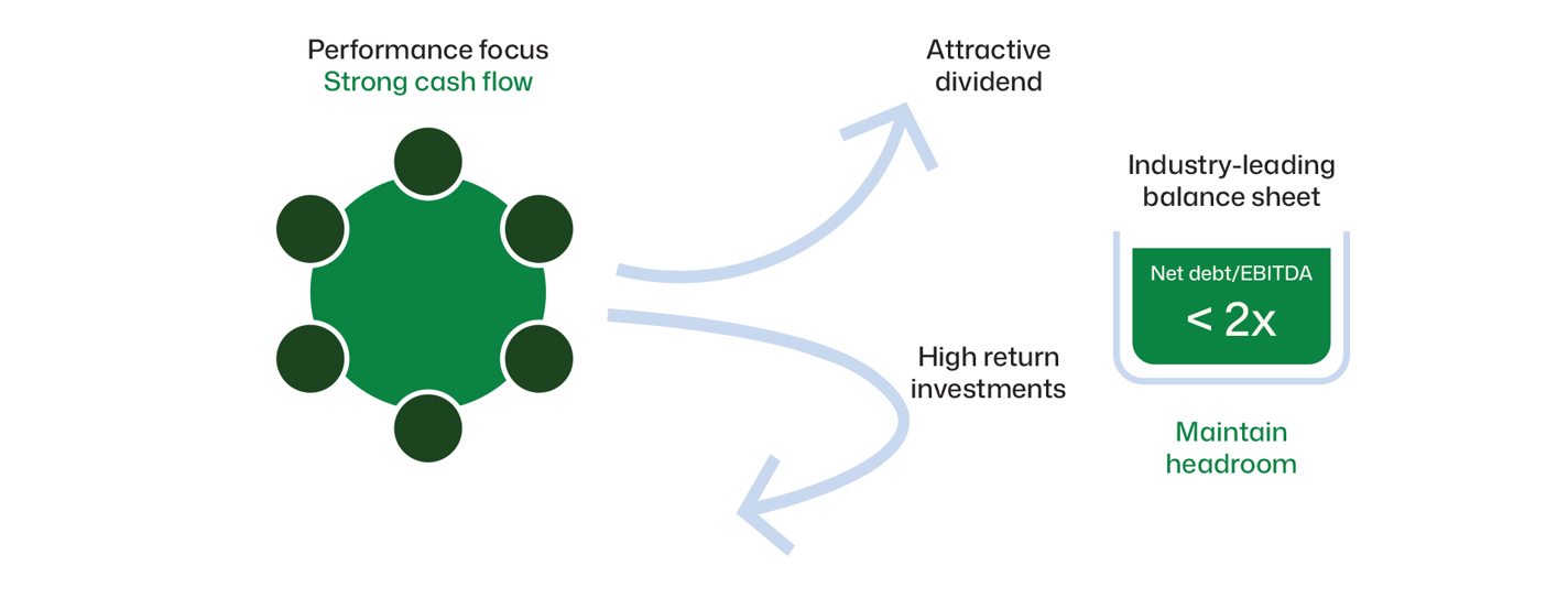 UPM directs capital to drive long-term value—investing in growth, ensuring strong returns, maintaining financial stability, and generating shareholder value.